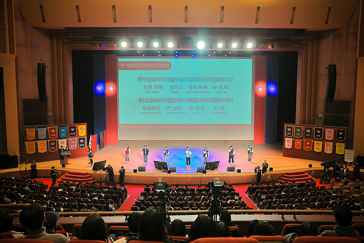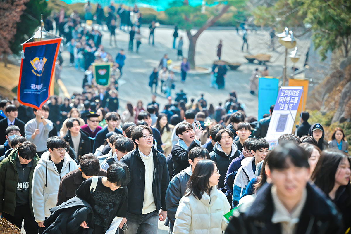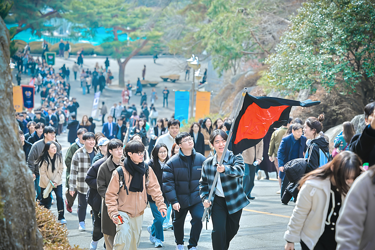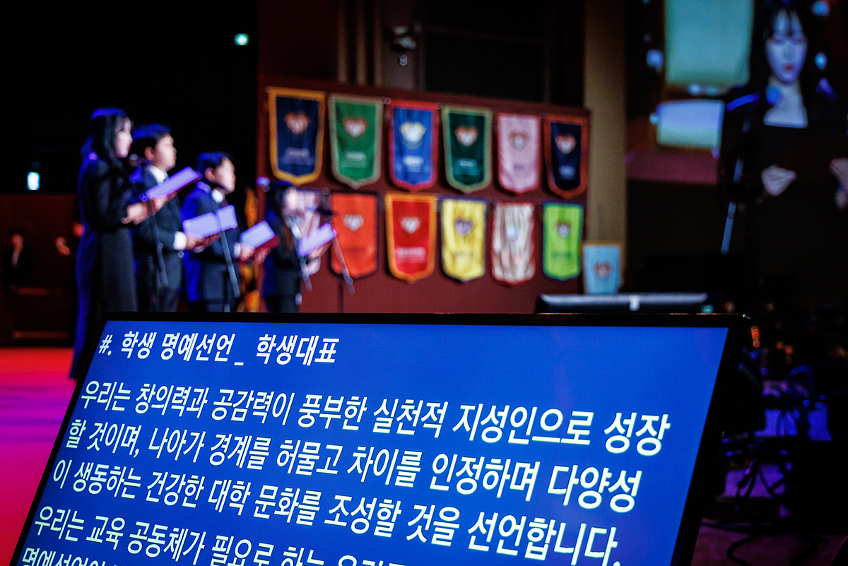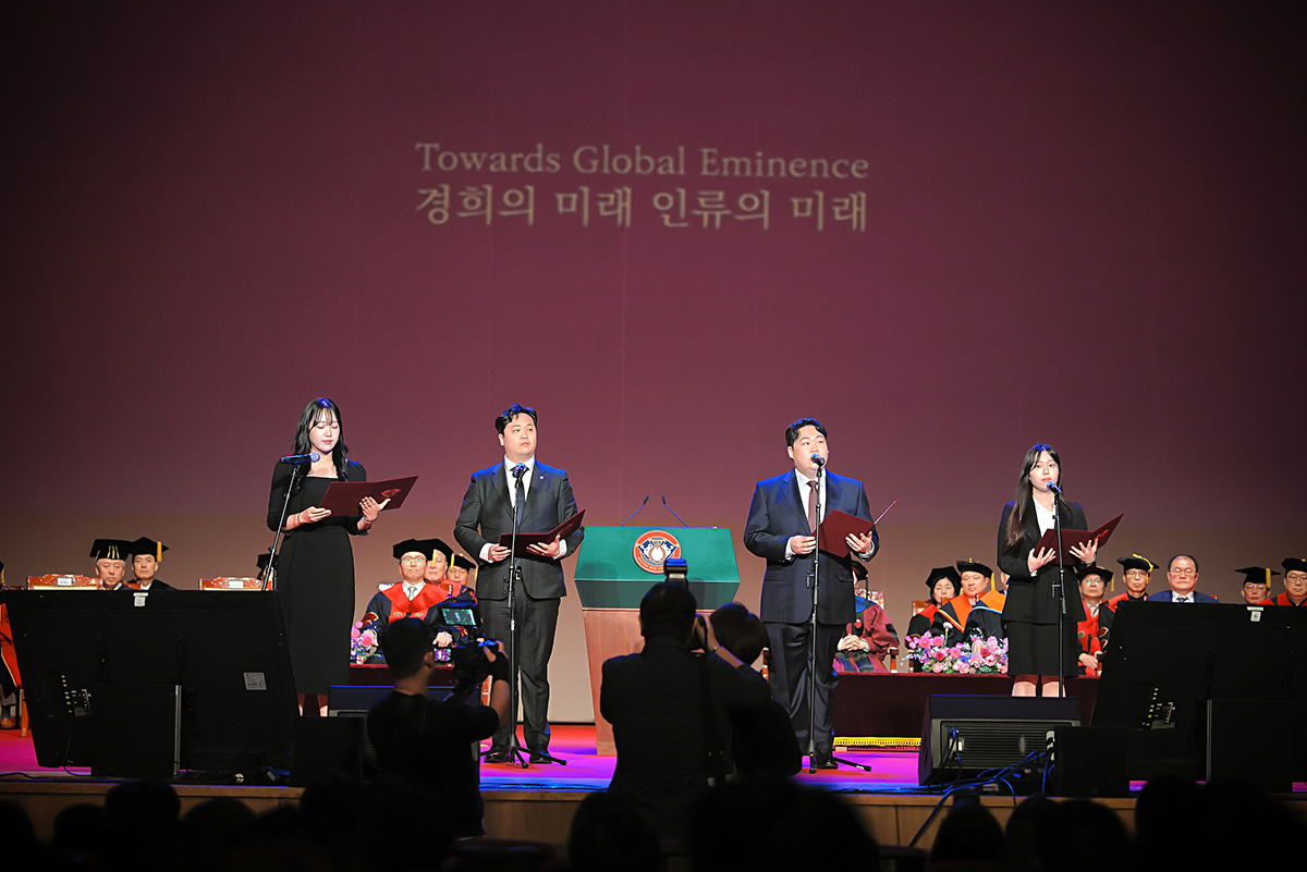 2025학년도 입학식이 2월 28일(금) 평화의 전당에서 개최됐다. 올해 6,026명의 신입생은 경희의 새로운 가족이 되어, 함께 미래를 향한 여정을 시작했다. 입학식은 △개회 선언 △국민의례 △경희 개관 △입학 허가 △환영사 △학생 명예 선언 △축하 연주 순으로 진행됐다.